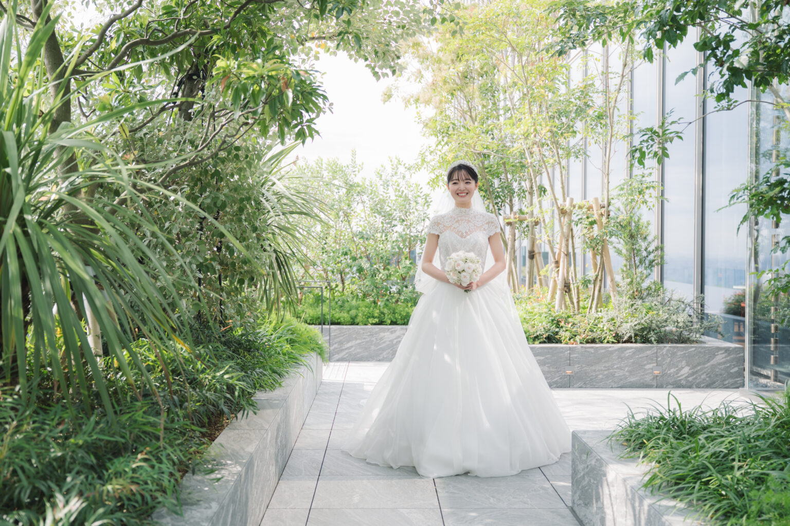 大きく広がる景色と光が、花嫁のシルエットやドレスの素材の美しさをより一層引き立ててくれます。