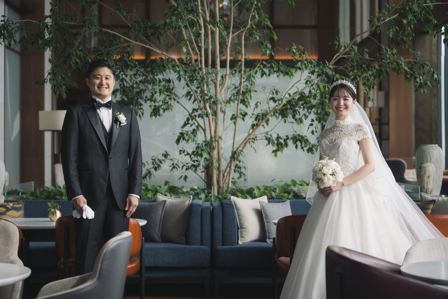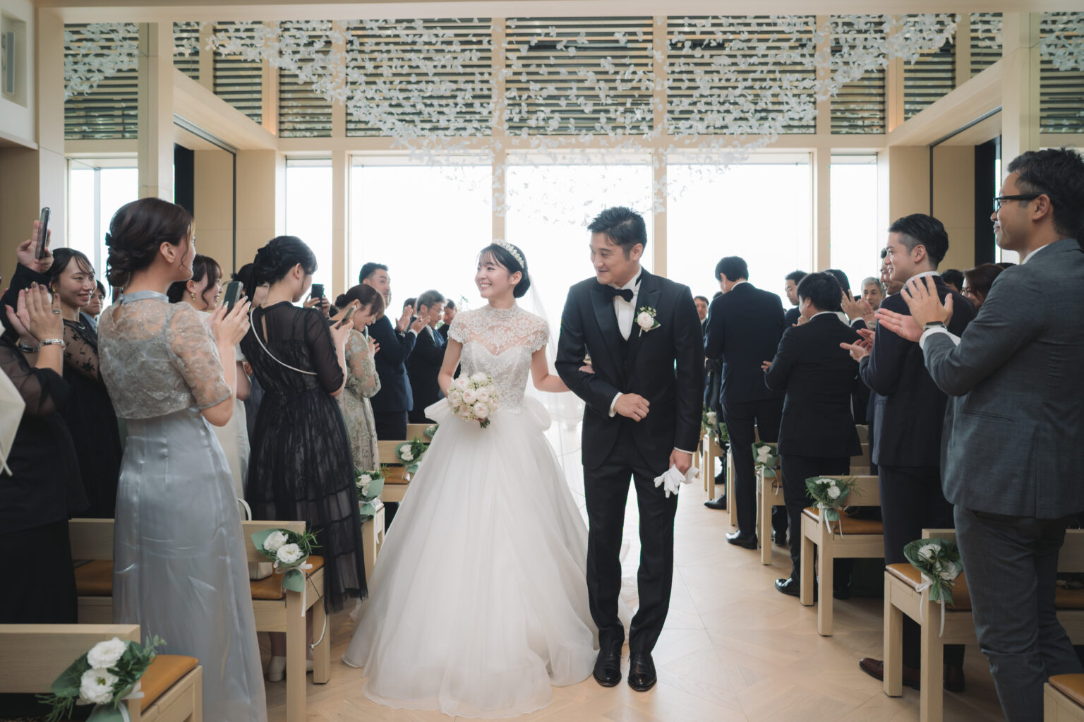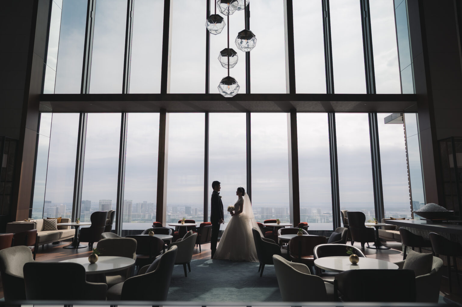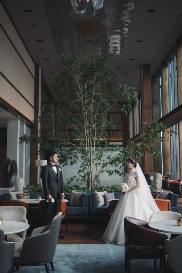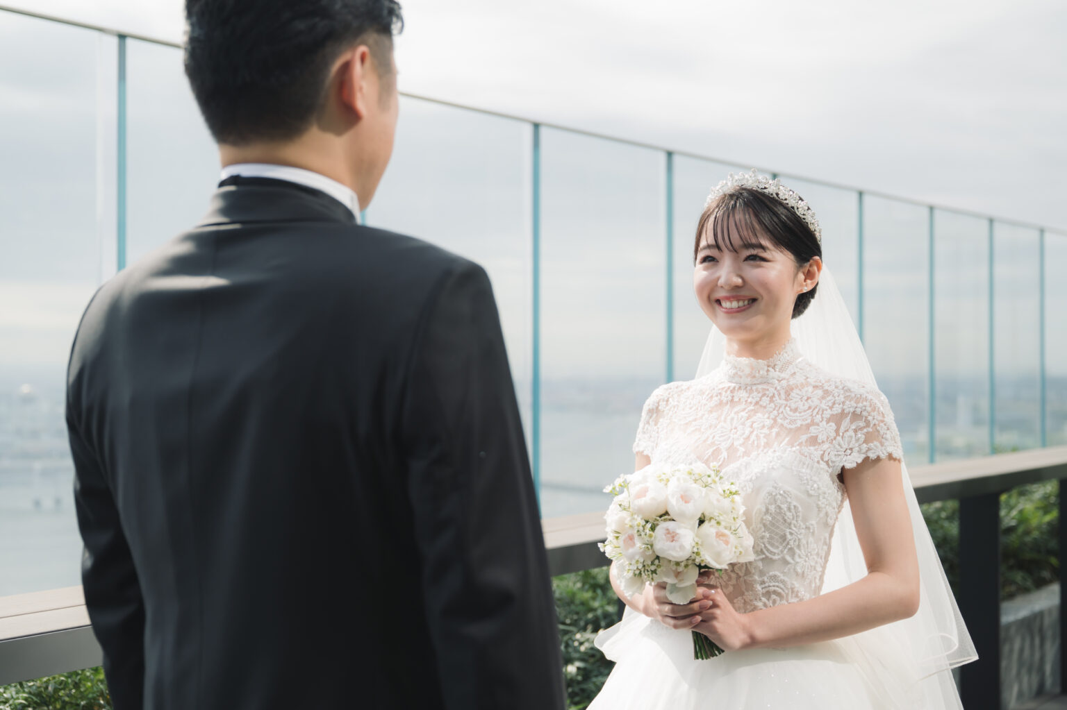 モダンな建築美と景色が調和する、特別な場所でお式を挙げられたお二人。