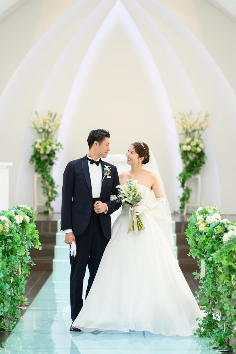 スカイライトチャペルの長く透き通るようなバージンロードと相まって