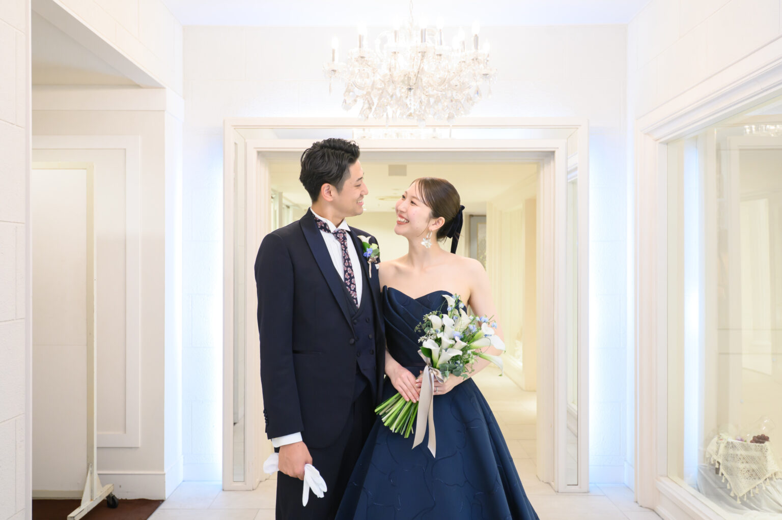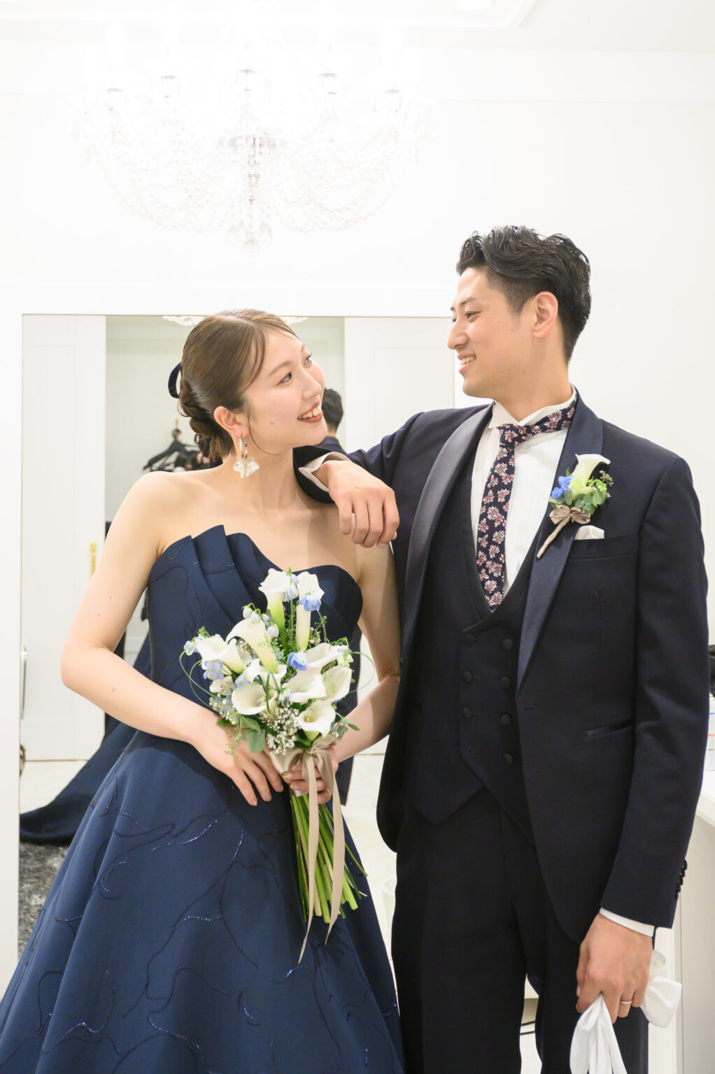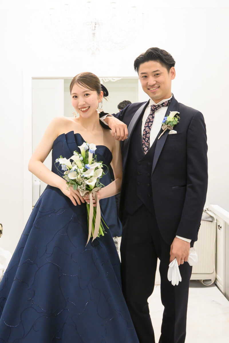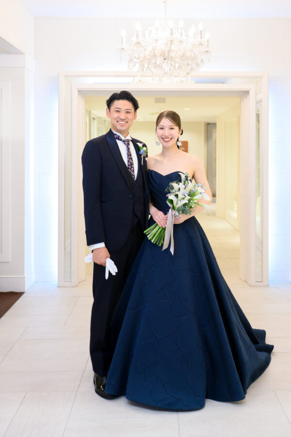 会場に華やぎを添え、ネイビーのドレスとタキシードも一層美しく映えました。