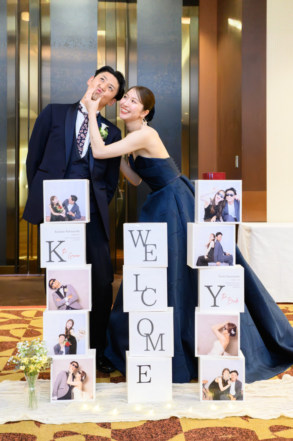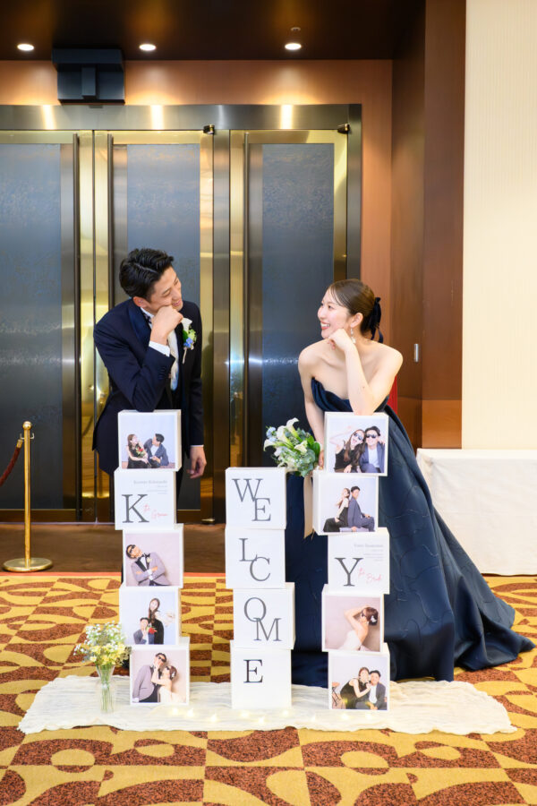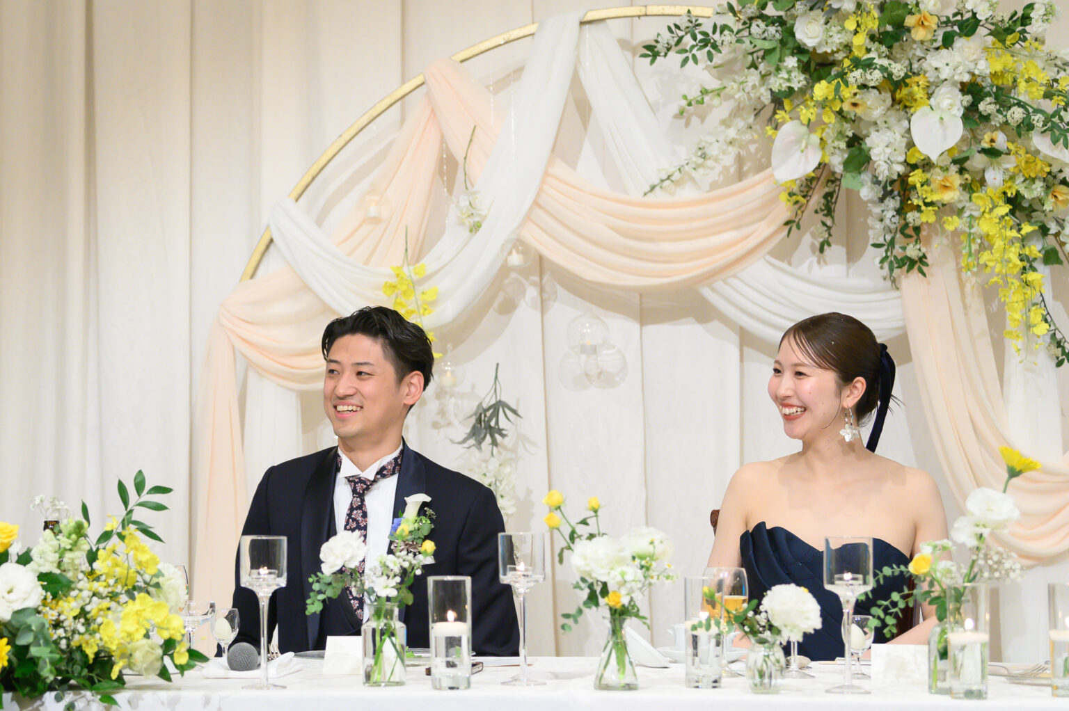 会場に華やぎを添え、ネイビーのドレスとタキシードも一層美しく映えました。