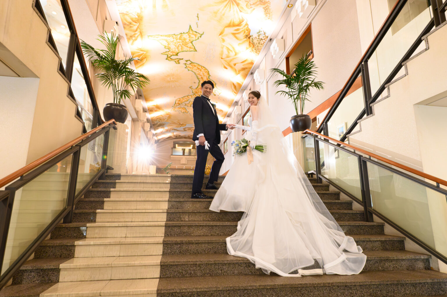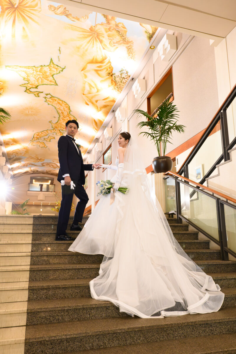 クラシカルなデザインとロングトレーンは何年経っても色褪せない花嫁姿を完成させます。