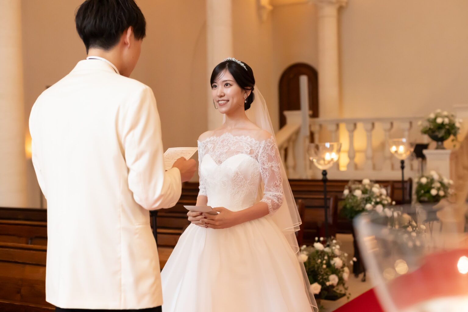 ロイヤルウエディングを彷彿とさせる佇まいは、厳かなチャペルに溶け込んでいました。