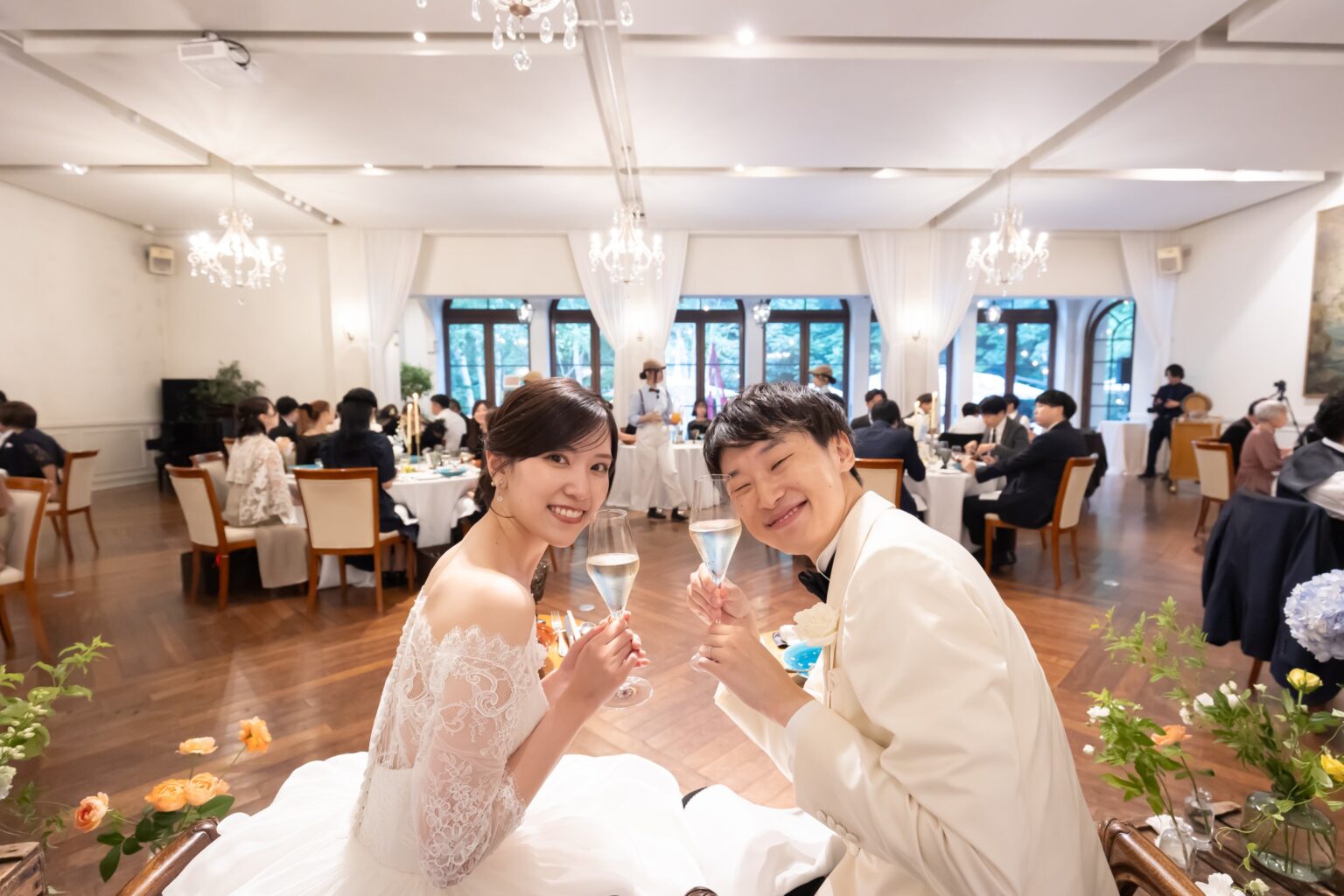 挙式のクラシカルな雰囲気からパーティー仕様に。