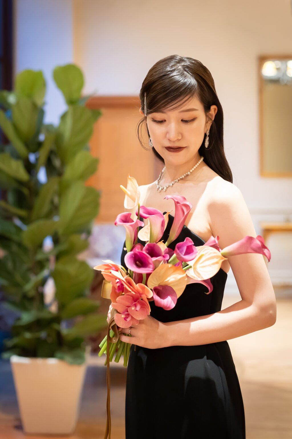 ブーケにあしらわれたビビットな色彩がとても映えてらっしゃいました。