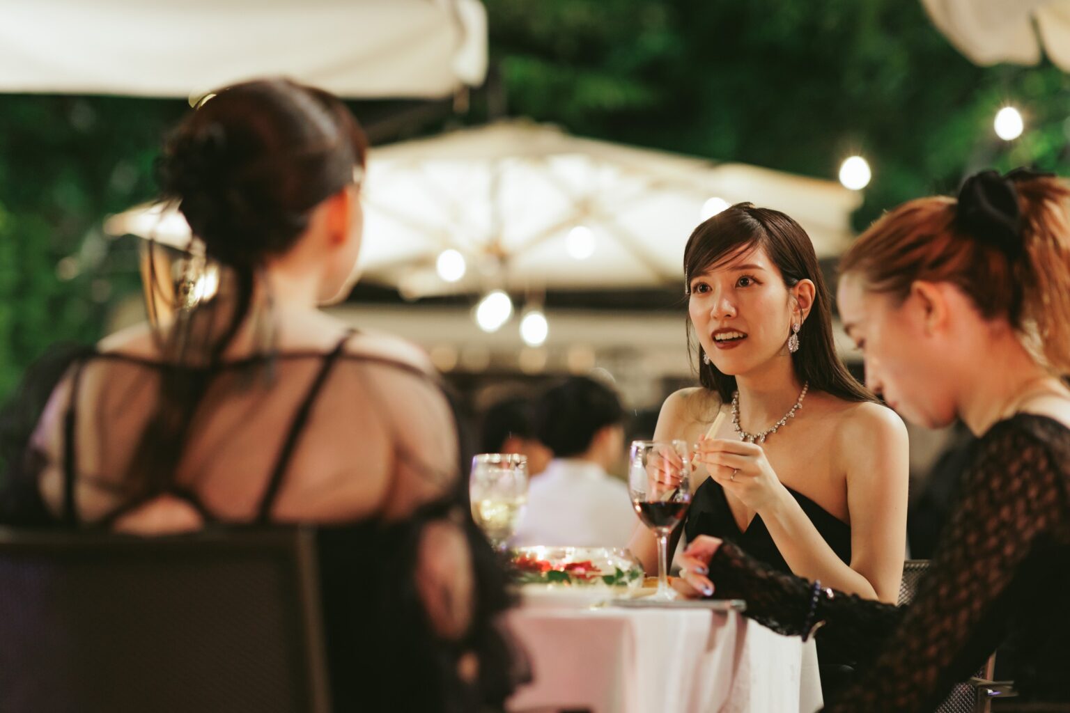 夜のジャルダンドゥボヌールのきらめきに映える一着を選ばれました。