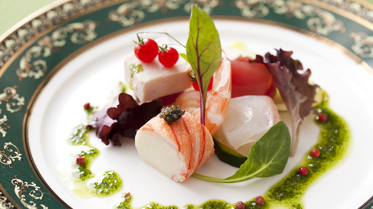 ふたりとゲストへのおもてなし料理をご用意するのは、海外の五つ星ホテルや大使館総料理長を務めるグランシェフ。シェフが1週間の手間隙をかけてご用意した一品は、口に入れた瞬間に優しい味わいが広がる。フレンチはもちろん、和洋創作料理まで幅広いメニューをご用意。