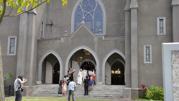 1837年創立の由緒ある地元のハワイアンの信者のために建てられた特別な教会。「ハワイの教会の女王」として有名な教会。堂内の流麗なアーチや三方向に輝くステンドグラス、椅子などは全てコアウッドで造られており人々に愛された続けている歴史を感じます。祭壇正面のパイプオルガンの音色に包まれての挙式は感動的。式後は教会前の広い庭で記念撮影やフラワーシャワーも楽しめます。