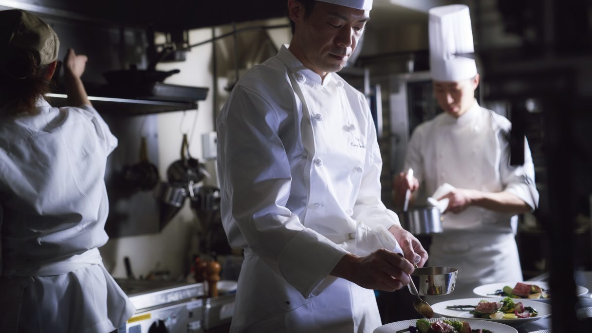 幅広い世代が出席する晴れの日にふさわしい、箸でも食べられる「フレンチ・ジャポネ」をご用意。温かいものは温かいまま、冷たいものは冷たいまま、隣接した専用キッチンからベストのタイミングでテーブルに運ばれた一皿一皿は、ゲストを自然と笑顔にさせ、おもてなしに溢れたパーティを演出。
