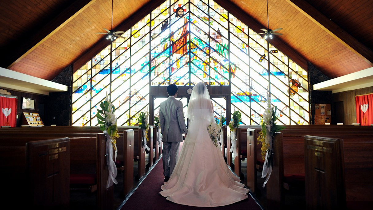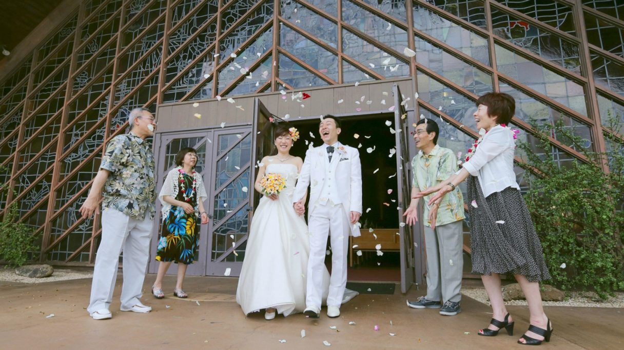 ホノルル空港の北モアナルア・ガーデンの程近くにあり、三角屋根が印象的なカジュアルな親しみやすさを持ちながらも、ハワイ州の重要文化財、歴史的建造物に指定される歴史ある建物。海をモチーフにした壁一面を覆い尽くすステンドグラスが美しい教会。挙式の後は前庭や教会横の芝生が広がるガーデンで写真撮影も可能。
