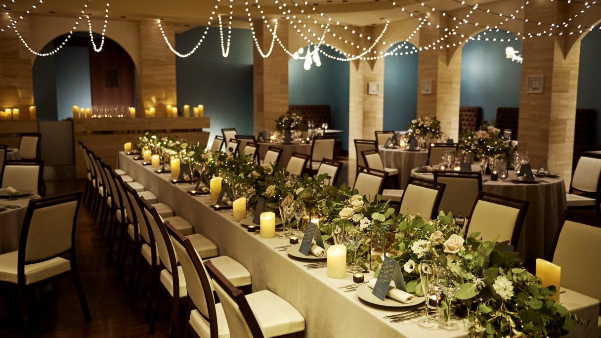 緑豊なガーデンを一望できる会場【ラ テラッツァ】と スタイリッシュなパーティ会場【ラ フォレスタ】の2タイプをご用意。コーディネート次第で自由に表情を変える多彩なパーティ会場で、おふたりらしいパーティを。